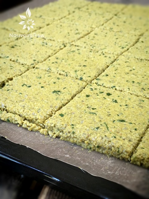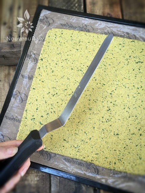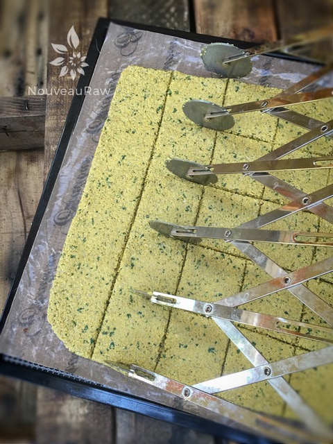 I used my 6 wheel pastry cutter to score the crackers. You can find here… https://nouveauraw.com/equipment/utensils-gadgets/