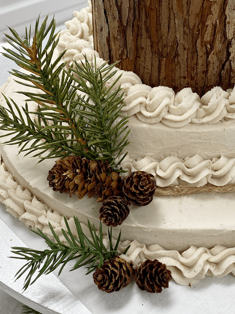 As far as when it comes to decorating your cake, you can dress it up or down; however, you see fit. Since I made this near the holidays, I decided to go with the wintery theme. Frosting, a log, artificial pines, and pine cones. I provided a link below on How to Frost a Cake should you need some guidance. Most of all, I hope you enjoy making and eating this recipe! Please leave a comment below. blessings, amie sue