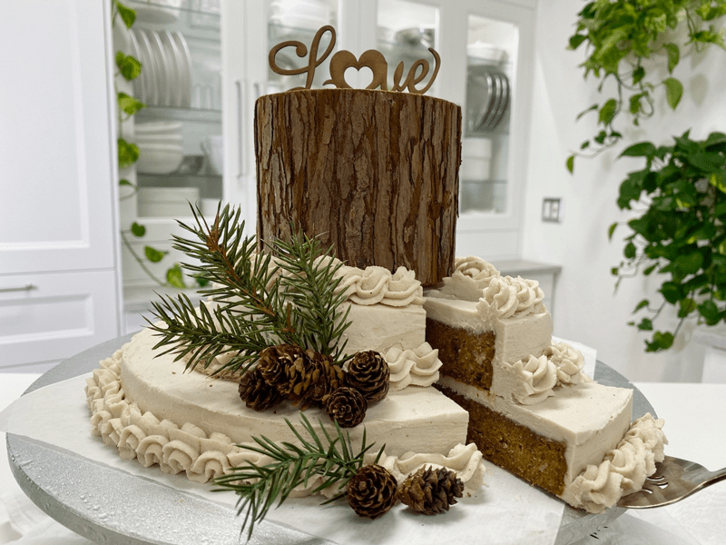 I poured the runny frosting on the cake, stuck it outside {it’s about 30*F right now} and it finally did the trick. For some reason it has a funky flavor though, I assume its the raw vanilla powder I added(not part of the recipe), I’m not liking the flavor of this new brand I bought. Will try again soon since I now have sunflower lecithin. The carrot cake itself tastes wonderful!