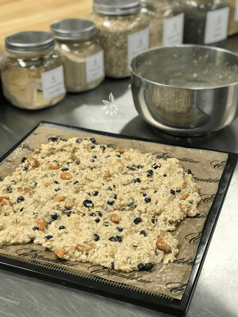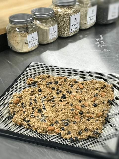 - Drop clusters of batter on the non-stick sheets that come with the dehydrator.