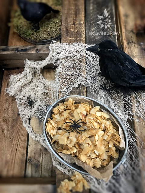I am always looking for raw food with a “crunch” to it for my salads or just for a snack.   These little morsels taste heavenly! Coconut “Bacon” Bits are fantastic.   I will admit that they don’t taste 100% like bacon bits but pretty darn close.
