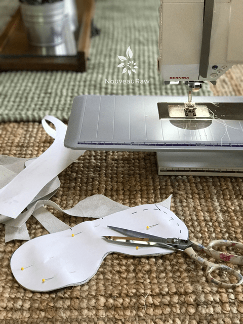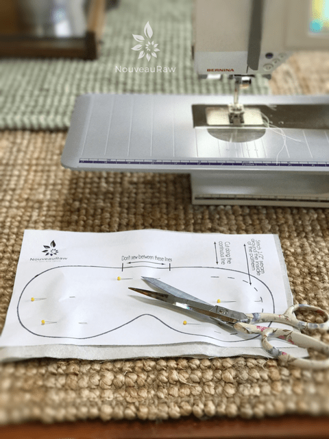 - Pin the eye mask pattern to the layers of fabric, making sure that the pins are inside the pattern lines.