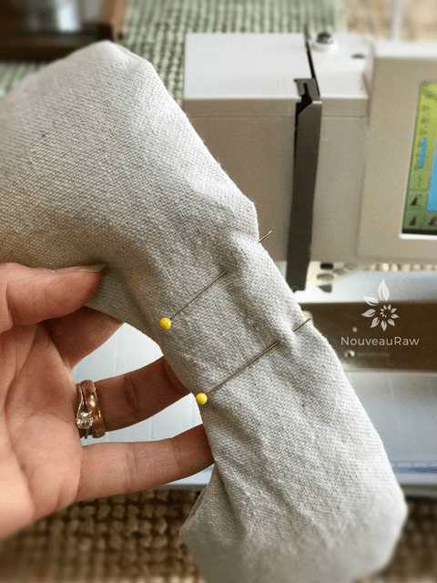 - Pin the fabric together again.