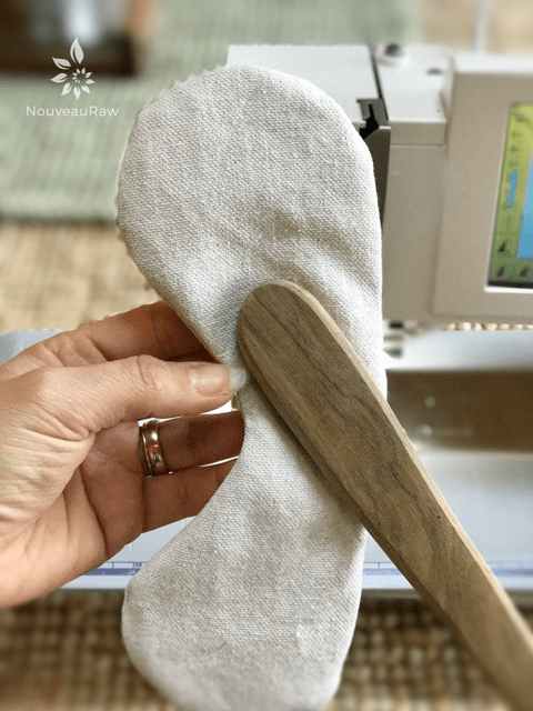 - Turn your eye mask right side out and smooth out the edges with your finger or a spoon handle (as I did) on the inside.