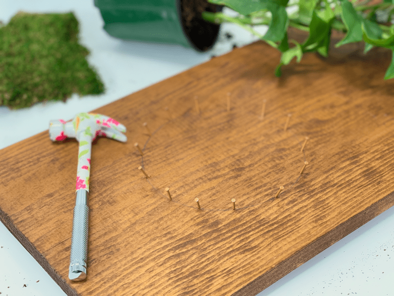 I have fallen in love with the art of creating the Kokedama moss balls and finding ways to display them in unique ways. Today’s post will show how you can hang them on a wall, as you would any framed artwork, where the detail and texture can be appreciated up close and from a distance. You can also just lean the board onto a surface as a way of displaying your work of art.