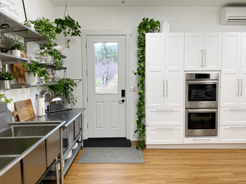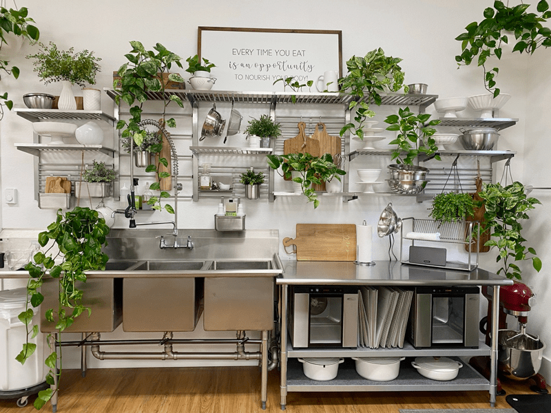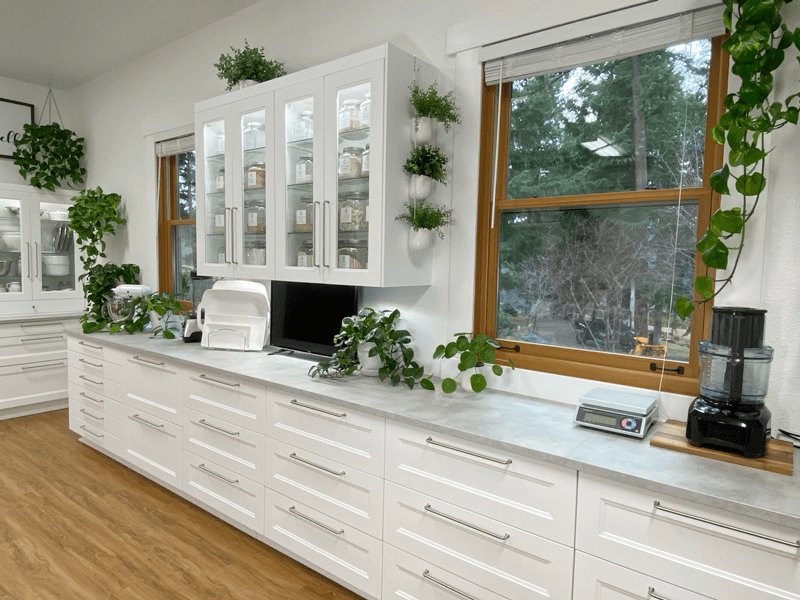 Today, I wanted to share with you my sacred space…my Studio Kitchen. This space continues to evolve with my interests and passions. When we moved into this house, this space was a two-car garage. Within a few years, we transformed it into a commercial kitchen for our food manufacturing business. After six years, it has been fully remodeled as the home of ALL my creativity. If you are interested, you can read all about the remodeling process (here).