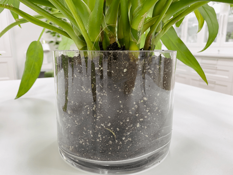 Up close shot of the glass plant pot.