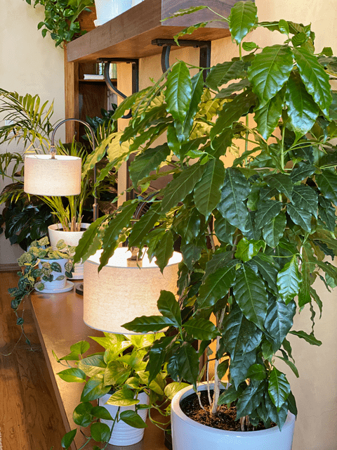 Placement in the House: My coffee plant sits approximately 5 feet from a north-facing window, which gives it plenty of indirect light. I also run a humidifier in that area, since I have many plants there that love the extra pampering.