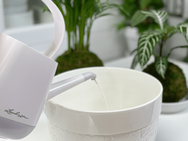 Add 2-4″ of water to a bowl that is suitable to hold the Kokedama moss ball.