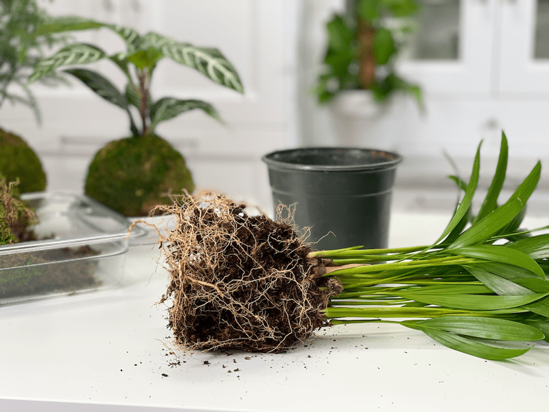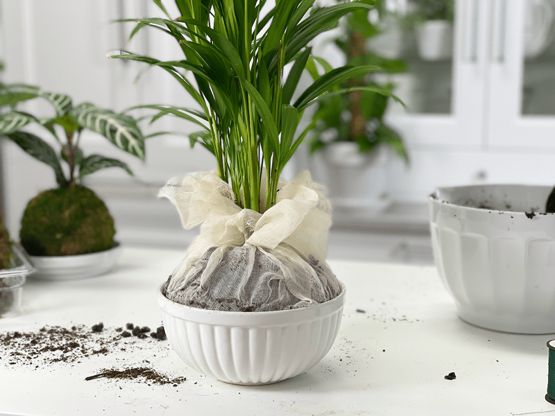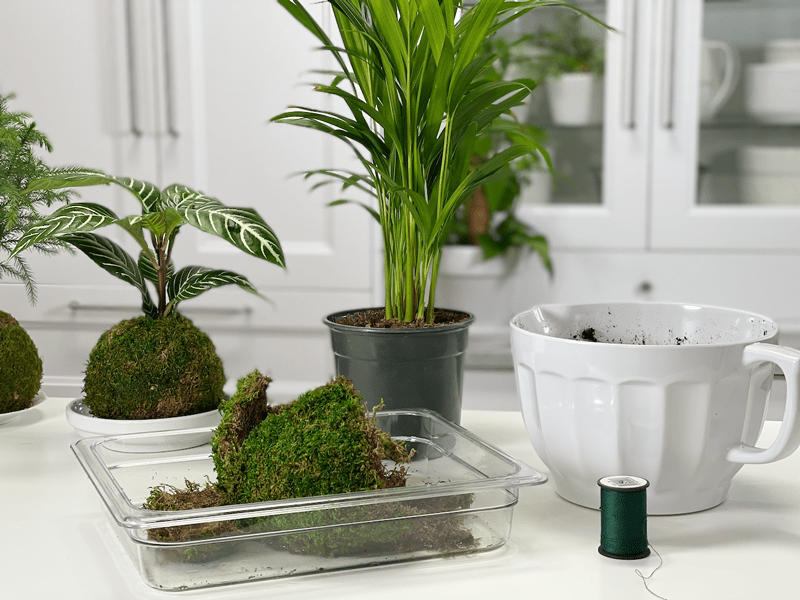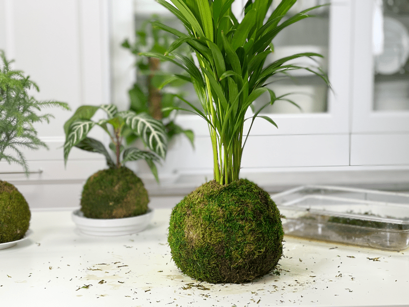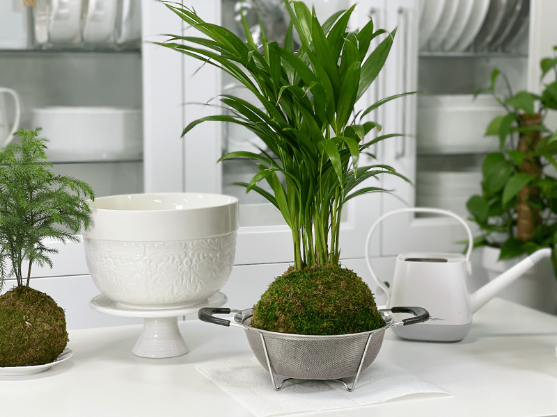 This style of “potting” is not a forever home for the plant. They usually last 2 to 3 years; however, the period can be shorter or longer, depending on the plant you use for your DIY Kokedama project. When the roots of plants are coming out of moss ball, it is a sign to remake the moss ball larger or replant it in a pot.