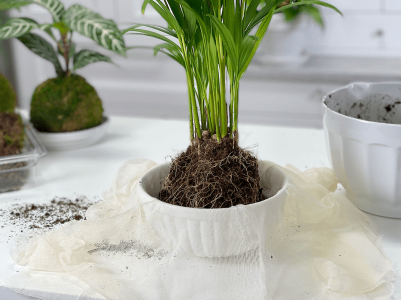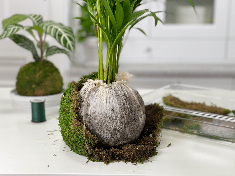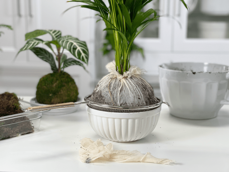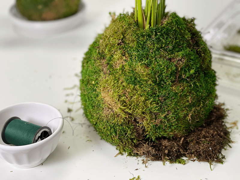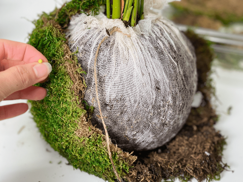 - Dried moss works but is a bit more fragile to work with. I like to rehydrate mine to make it easier to form it around the soil ball.