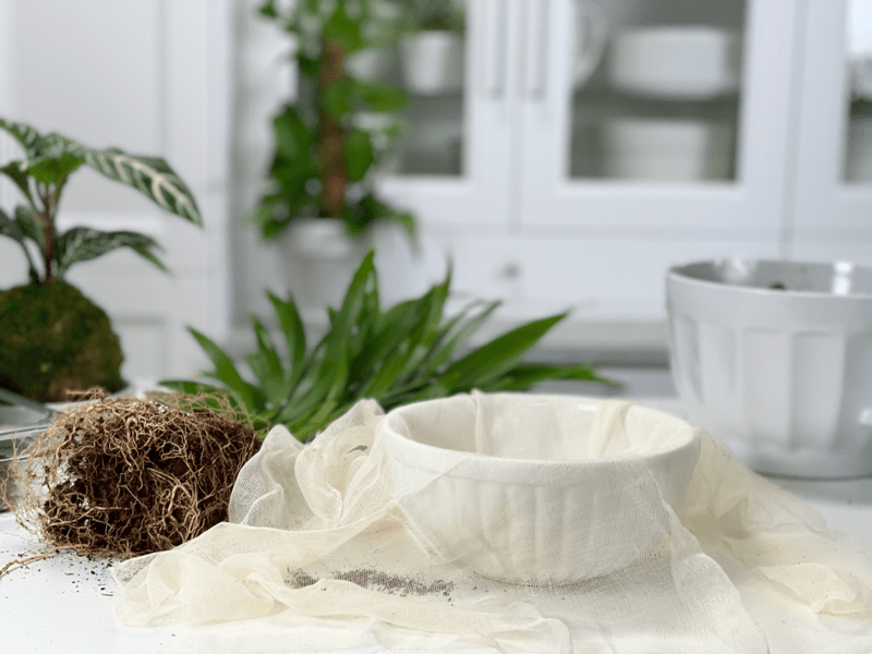 - Use unbleached cheesecloth to avoid adding chemicals to the roots of the plant.