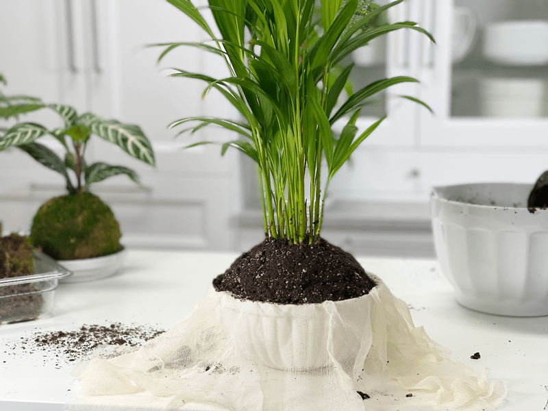 Select a round-bottomed bowl that is roughly the size of the pot (in diameter) that the plant came in. Leave plenty of excess cheesecloth on all 4 sides.