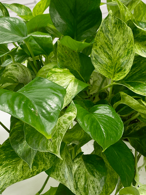I really enjoy the leaf patterns of the Marble Queen pothos. At first, I struggled…well, not sure if that’s the right word, but I found pothos plants with a LOT of variegation on the leaves to be a tad bit more temperamental. The more white they have on the leaves, the more indirect sunlight the plant requires. If your plant doesn’t get enough light, it will start to revert to being all green.