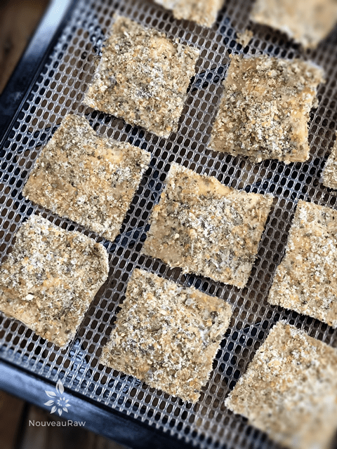 - Place each ravioli on the mesh sheet that comes with the dehydrator. Repeat the process until all the ravioli are coated.
