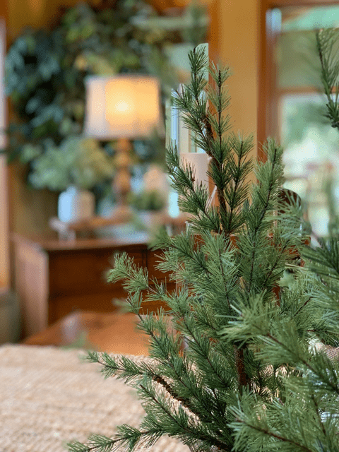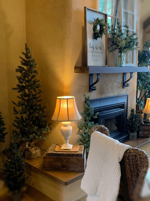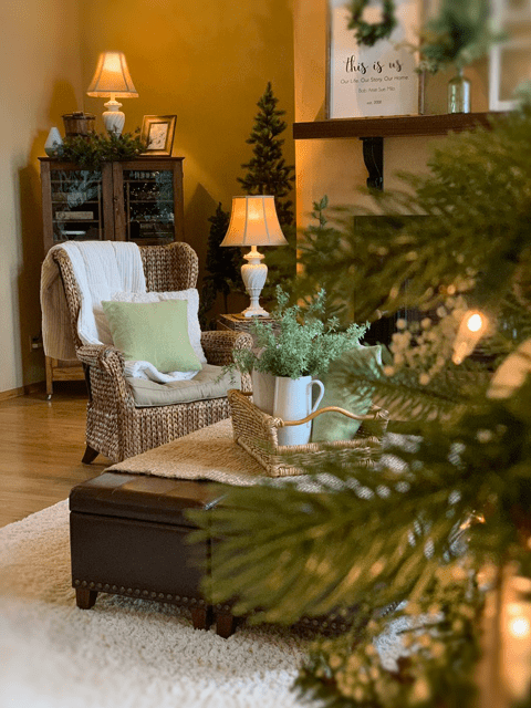 Since we are also celebrating Christmas, I sprinkled a little Christmas magic in every room. The main tree is decorated with earthy tones. To add a fresh, whimsical look, I bought some large bouquets of fresh babies breath and poked it in throughout the tree.