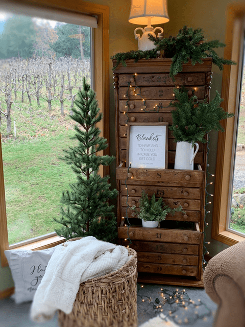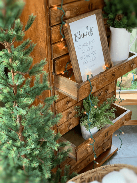 When the chilly months arrive, then blankets are always welcome. I LOVE the lap-sized ones. You will find them scattered all over our house. When I sit down, I want a little blanket to snuggle into… so if I want that, surely my guests do too. I have two blanket stations. One right when you enter into the house and a second one in the sunroom. Outside of these stations, you will find blankets draping over chairs. Call me silly, but don’t call me chilly!