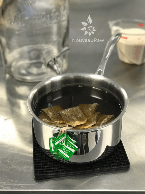 - Remove from the heat, add the tea bags and steep for 20 minutes.