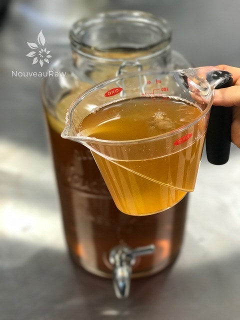 - Also known as starter tea. This comes from the last batch of kombucha or store-bought kombucha (unpasteurized, neutral-flavored) or it can even be from a friend who makes kombucha. Some people will use distilled vinegar instead, but I haven’t tried this and have read mixed results.