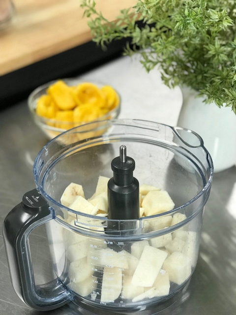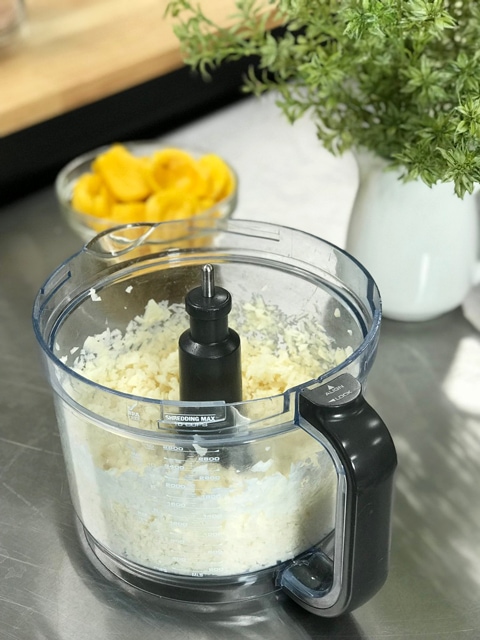 2. Fit the food processor bowl with the “S” blade and place the jicama inside.