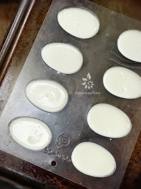 So in my next attempt, I brought the almond milk to a low boil and added the agar and salt to it.  Then poured the mixture straight into the molds.  No small air bubbles.  So, this will be your call on how you want to process the almond milk into the recipe.
