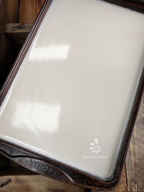I tried the recipe again and had great results. This is the second time I used the new agar agar powder and when it goes into the water, it begins to gel (differently than my old agar agar powder). I concluded that my old agar-agar is too old, however my first batch with the new agar-agar didn’t turn out well. This current batch, I put the agar agar into a wok style pan (before I used a regular pan) thinking the whisk would reach all parts of the solution. I also used the recommended salt instead of the Himalayan salt I was using. (Amazon delivered in time) I was also doing the scrambled egg recipe this time and added the turmeric with the milk and I got a better egg color. (As I cooked before, the mixture got a dark brown instead of egg yellow) The agar agar seemed to gel much better in the wok pan than the sauce pan. I added the almond milk and heated for another 30 seconds. I put it into a shallow pan (I said bowl on my previous email- oops) and put it into my winter refrigerator (unheated sun-room 38-40 degrees) This time it worked very well. My conclusion is that the old agar agar is too old and the pan shape for cooking the agar with my rounded whisk combined the agar and water to create a thicker gel before adding the milk. I have always cooked the agar powder for 4 minutes. I changed too many variables to know what actually worked, so next time I will not heat the milk and see how it works. Thanks for posting this recipe with the agar agar and all the others. I will update when I try again. Thanks for your help.