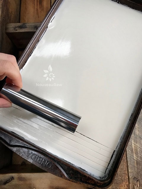 Pour into a baking pan with an edge.