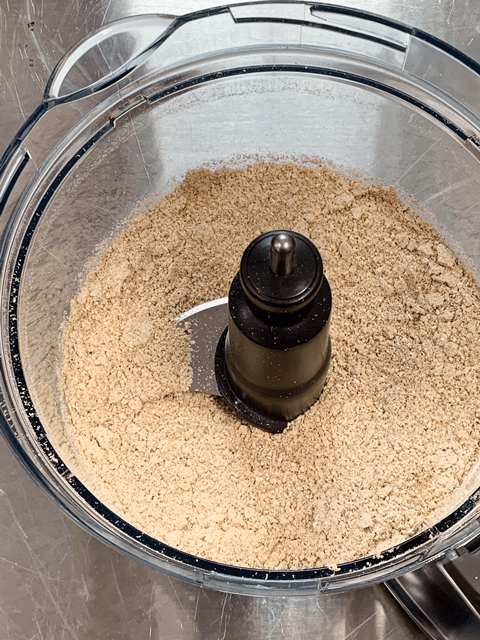 - In a food processor, fitted with the “S” blade, process the macadamia nuts, oats, all spices, flaxseeds, and salt to a small crumble.