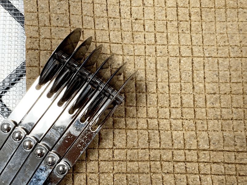 - Line the dehydrator tray with a non-stick sheet and place the batter in the center. Shape into a ball, cover with plastic wrap and roll out to roughly 1/4″ thickness. Remove the plastic and score into small cereal squares.