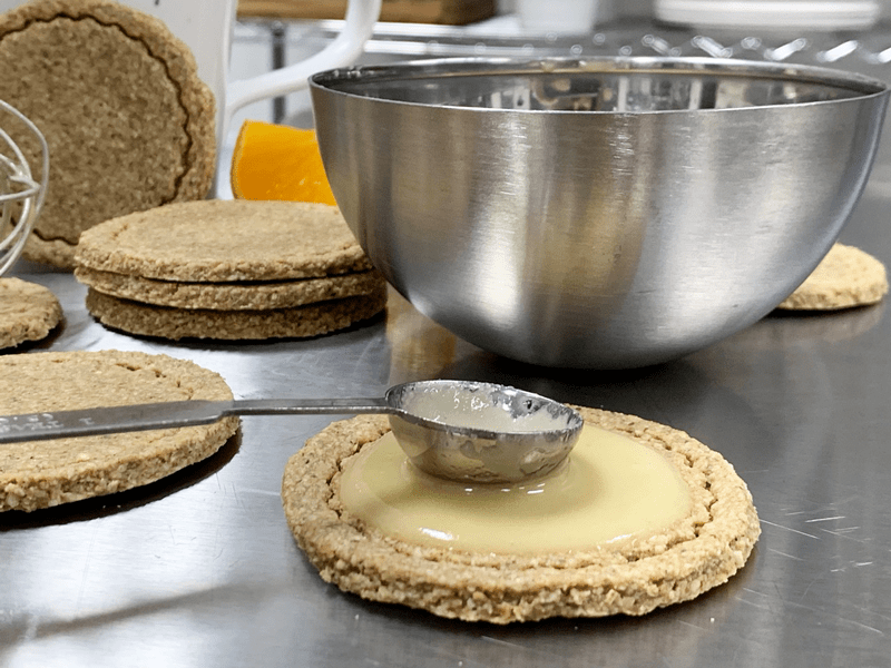 - Place 1 tsp of glaze into the center of each and gently spread it towards the edges.