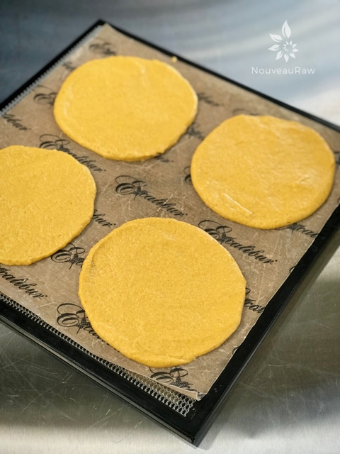 There is a timing factor when it comes to creating taco shells. They do require a little babysitting as they near their finished dry time. If not monitored they can go from soft and formable shells to tostada style shells. Of course, there isn’t anything wrong with that, if that is what you are aiming for. But to get the shell shape, you will need to catch them when they are just dry enough, pliable enough, to fold into shell shapes. Once you have them shaped, you will continue to dry them until crunchy.