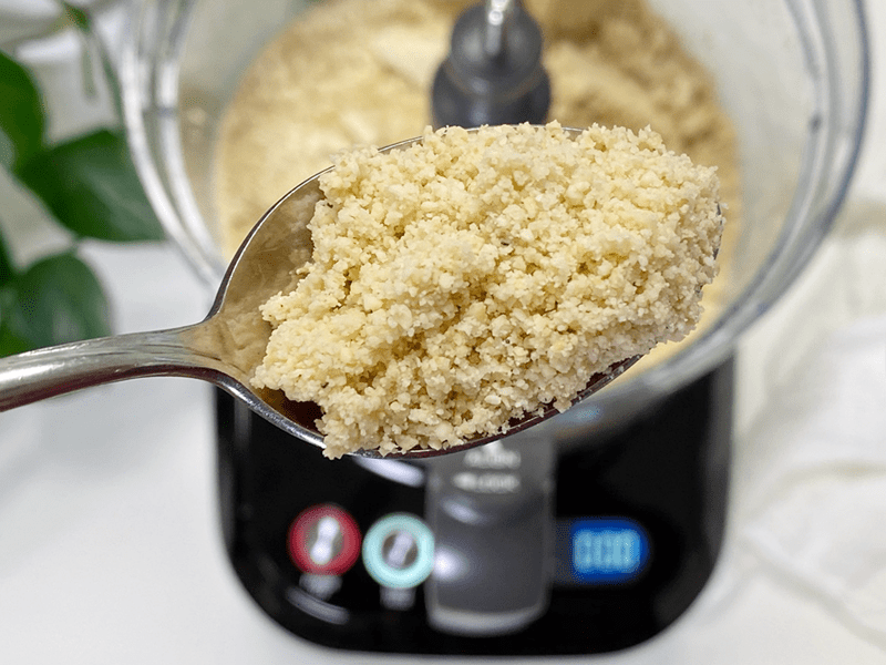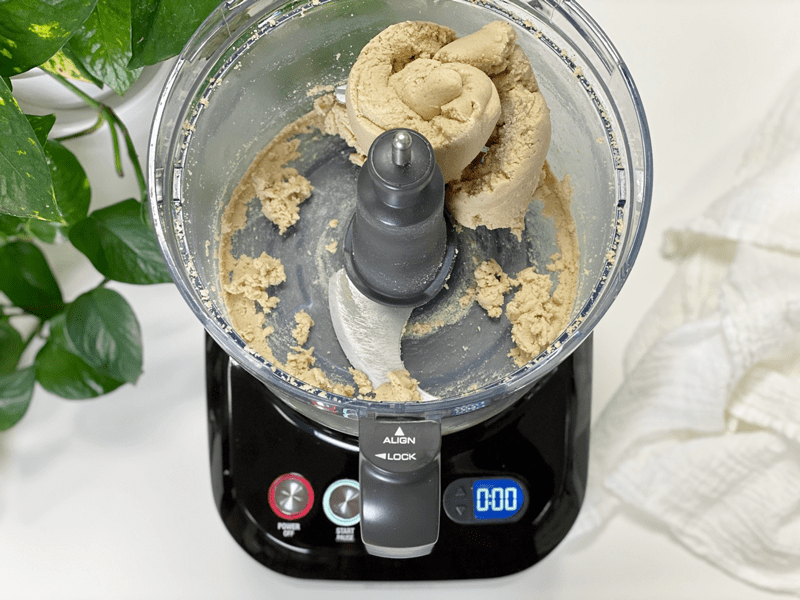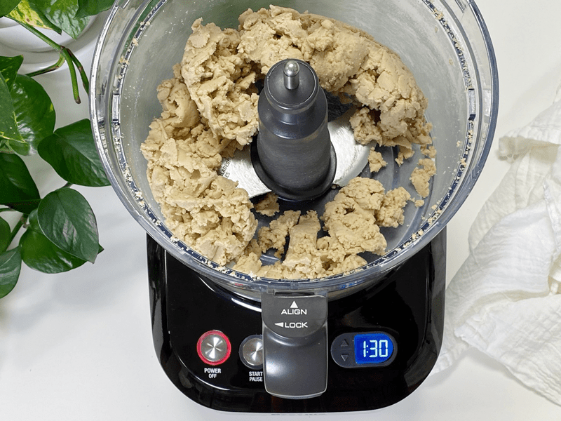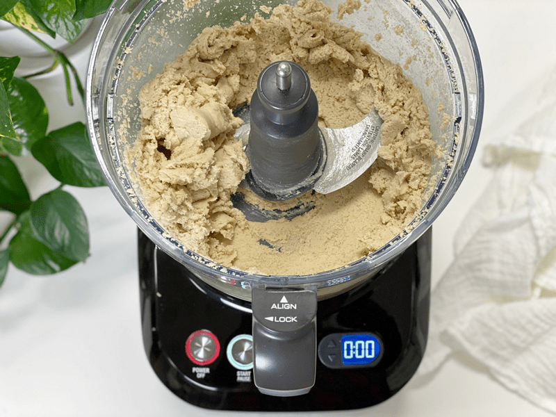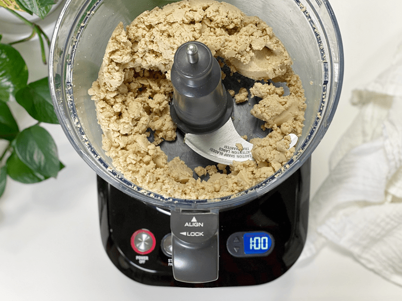 - Be patient. Remember, the nuts will go from mealy to powdery, to clumpy, to a large ball of dough, before it hits that velvety stage, so be patient.