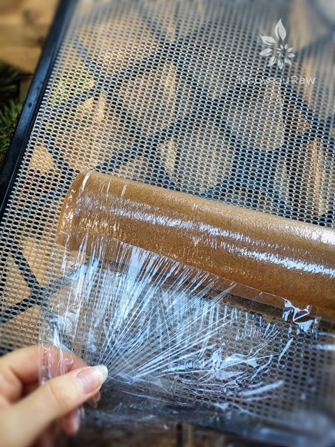 - Once chilled, remove the plastic and slice into 1″ slices.