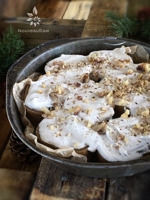 And more frosting that has been thinned down a tad with water or almond milk. Sprinkle walnuts on top if you wish. Enjoy!