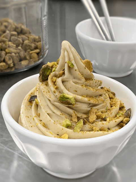 - It will go from chunks to lumps, to a creamy, soft-serve ice cream texture. Blend for a few more seconds to aerate the ice cream.