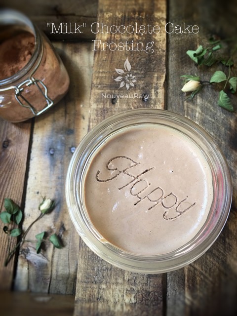 These frostings are based on dates.  I refer to them as instant frostings because they don’t contain cashews (which require lead time for soaking).  This creates a frosting that can withstand room temperatures.  They typically don’t require very many ingredients and are extremely quick and easy to use.