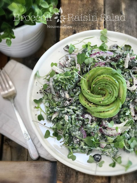 I won’t try to pull the wool over your eyes; you have to enjoy broccoli to enjoy this recipe. It’s the main attraction! This recipe is slightly sweet, BUT you can easily omit the raisins and transform it totally into a savory one. Perhaps make it without the raisins, enjoy it as a savory salad, and then come the next day, toss some in to change up the flavor pallet.