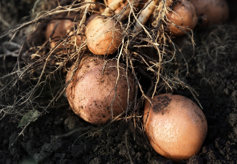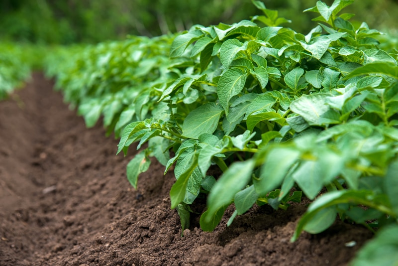Potatoes are grown in cooler climates and are often thought of as roots because they usually grow in the ground. But technically they are a starchy tuber. They grow on short branches called stolons from the lower parts of potato plants. By the way, though potato vegetable plants also flower and produce small, many-seeded berries like cherry tomatoes, all parts of the plant are poisonous if eaten. Except for the tubers.