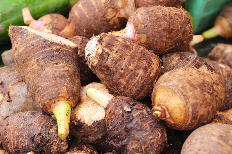 The leaves of the taro plant are no nutritional slumps, either. They taste sort of like spinach but have a heartier texture. They’re also good sources of fiber, vitamins A and C, and protein. (2) The taro root is said to have a mild flavor that takes on more of a nuttiness once cooked, a characteristic that makes the taro extremely versatile for both sweet and savory dishes.