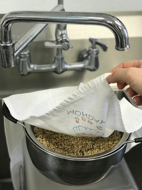 - Cover the sprouting contain with a breathable cloth such as cheesecloth. They like air-circulation, so don’t suffocate the sprouts.
