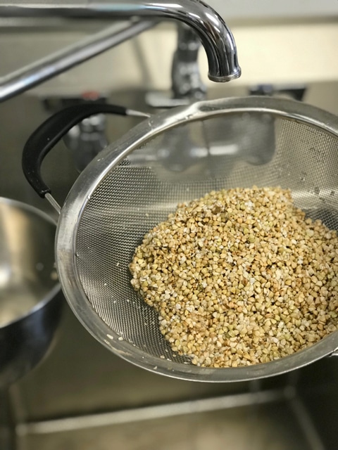 - Use a strainer that had small enough holes to where the small buckwheat seeds won’t fall through.