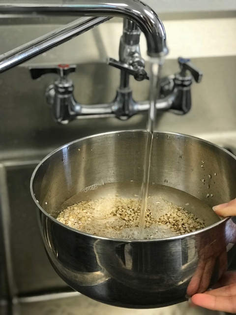 - When ready to drain and rinse the soak water, skim off any non-seeds that are floating on the water. Sometimes foreign “objects” can get mixed into the seeds.
