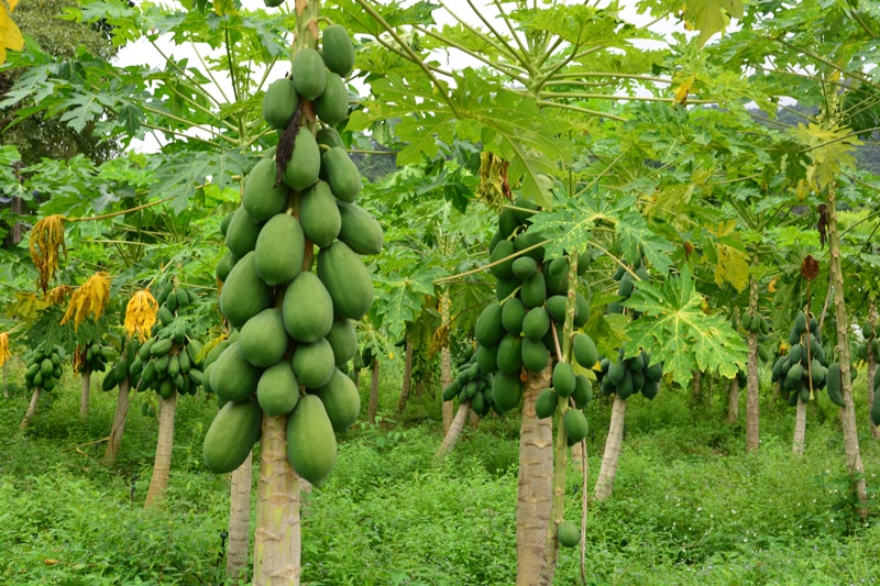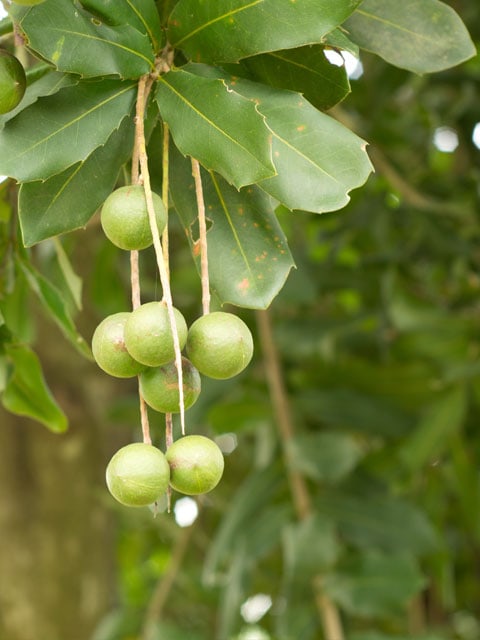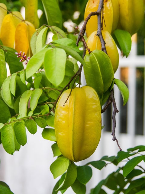 Answers – Starting from the top left: lychee fruit, macadamia nuts, star fruit, figs, pomelos, and papaya.