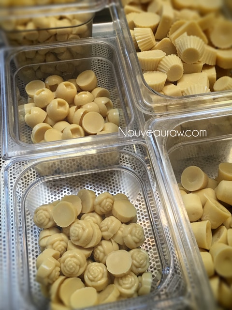 Once the cacao butter had returned to a solid form, I popped them out of the molds, placed them in airtight containers, and repeated the process until all the liquid raw cacao butter was used up. I prefer to store my cacao butter in the fridge. It will keep solid until about 90 degrees (F). So it’s just a habit to place it in the refrigerator or freezer just to be sure. If you don’t have the extra space in the fridge (prime real-estate area), store it in a cool, dry place. It has a high level of stability and a long shelf-life.