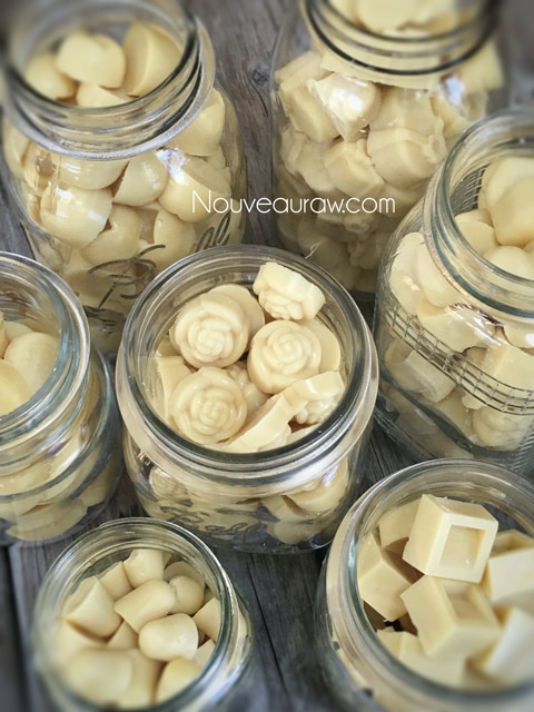 If you have a friend or loved one who enjoys playing in the kitchen, these pieces would be a wonderful gift for them. I placed the cacao butter shapes in mason jars to show you just how adorable they would be to give as a gift.