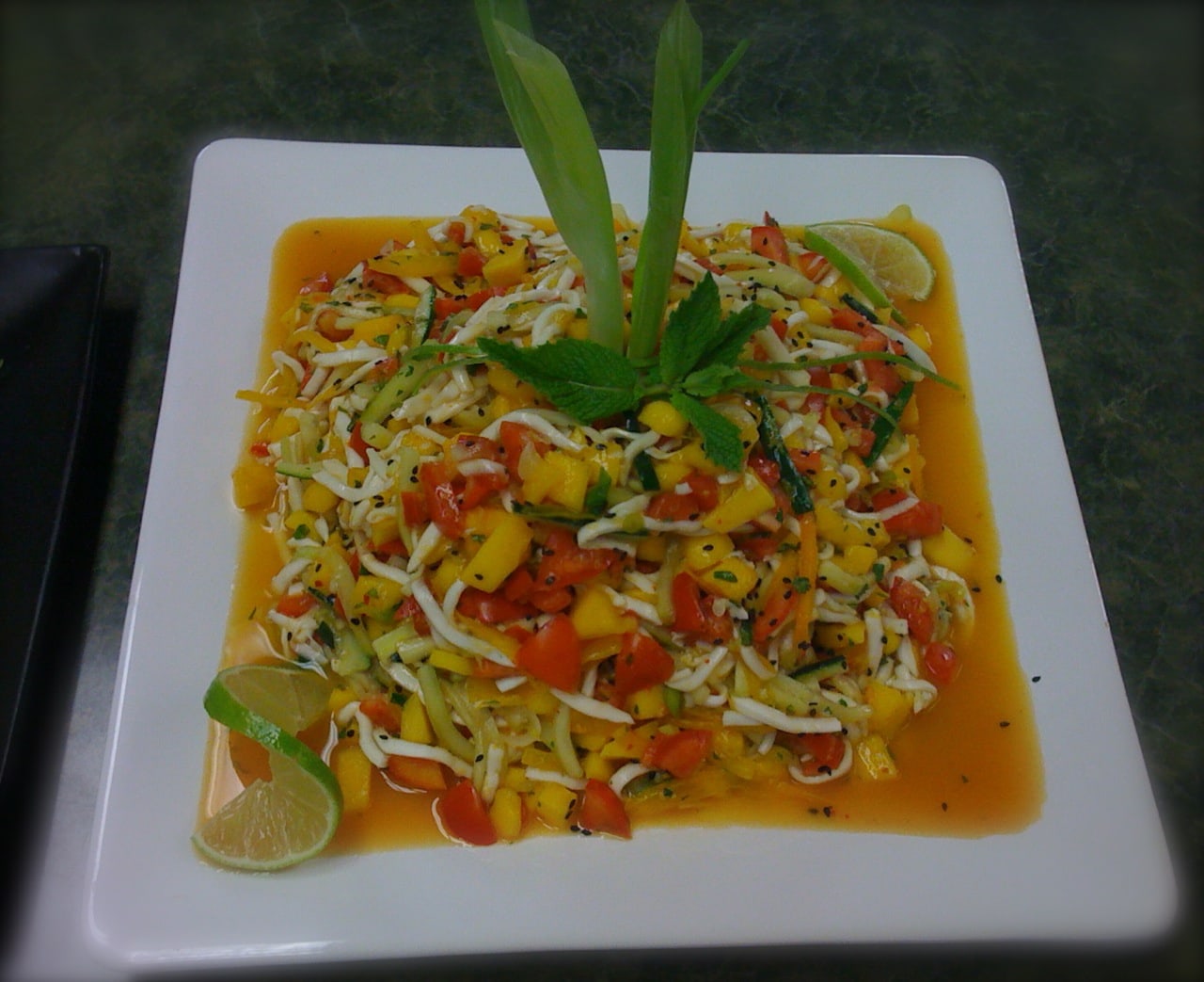 This course was designed to teach us how to convert cooked recipes into raw. The next phase told us what ethnic region it needed to come from. Then we were given the opportunity to choose whether we wanted to create an appetizer, a salad, a main course, a soup, or a dessert recipe.