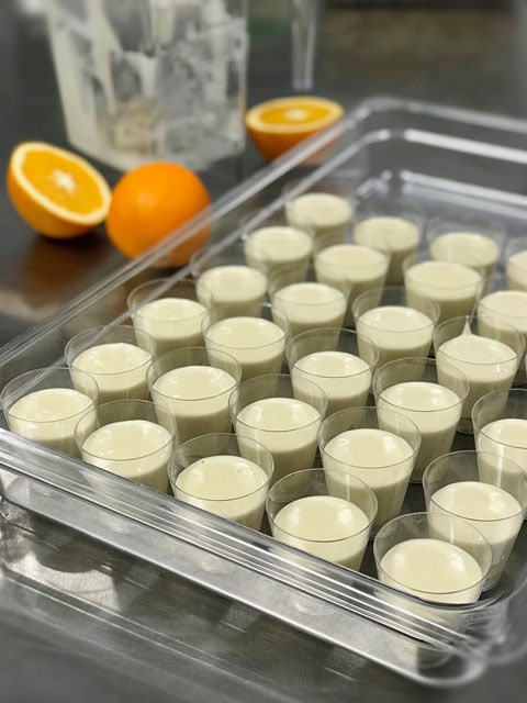 This time around I served this cheesecake in small sample sized cups. In fact, I used “Big Party Pack” 2 oz shot glasses to be exact. They are perfect. Without touching them, they look like they could be glass, they are super sturdy, and you could reuse them many times over if you wanted. (I do). When washing mini cups, you need mini fingers and mini washcloths. hehe