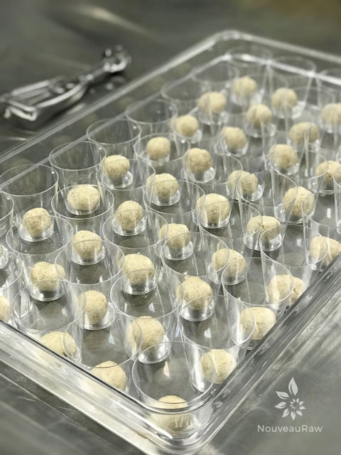 In this particular case, I found that these samples are a no-brainer. Especially when making up raw cheesecakes. You can make them up ahead of time and slip them into the freezer. There they will patiently wait for you. Since they thaw fairly quick (because they are so small), you can take them out on an as-need basis. Therefore, should you have any leftovers you can just keep them tucked in the freezer. No waste at all.