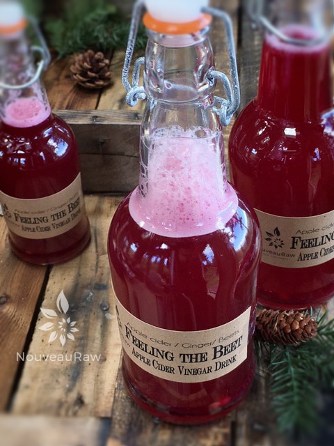 The three key ingredients are beet juice, apple cider vinegar, and fresh ginger.  A powerful trio to wake up the digestion and to help get things moving.