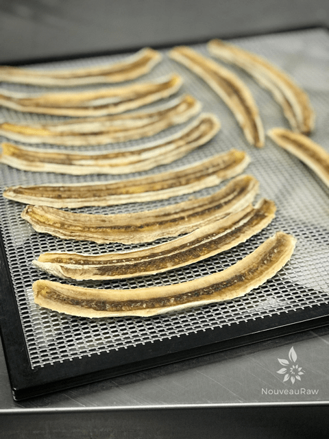 - If you get 3-4 slices per banana the outer slices will most likely dry faster, so you may need to pull them out sooner then the center slices.